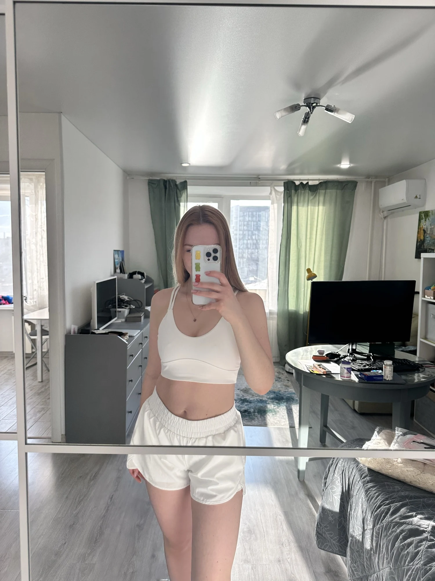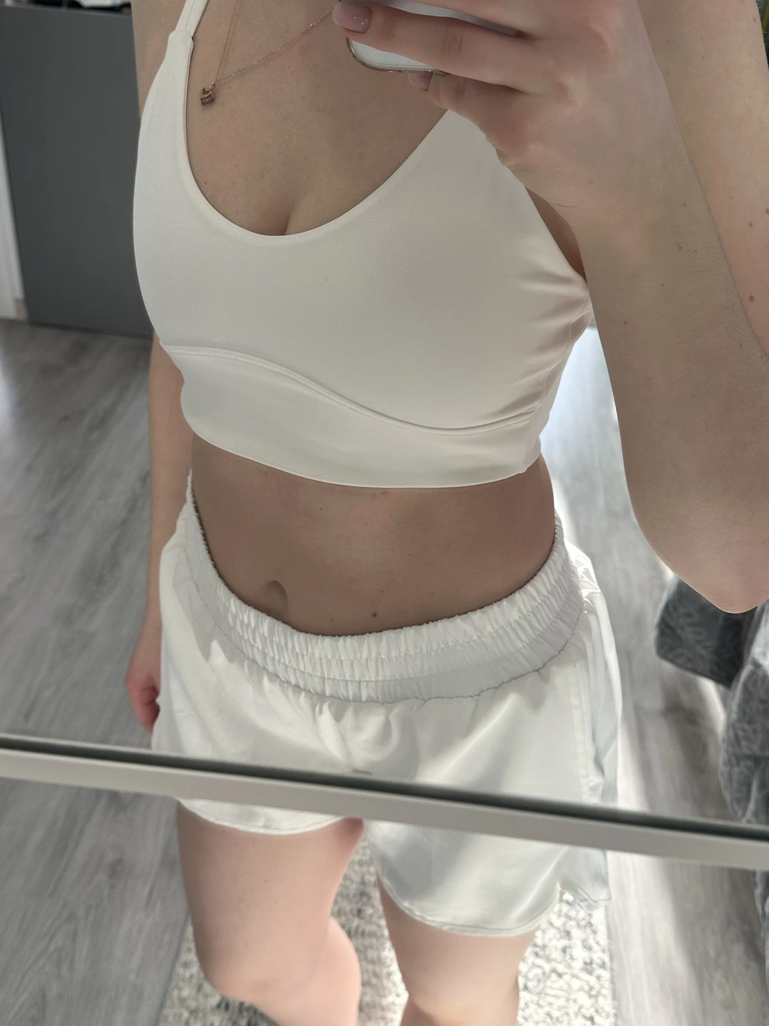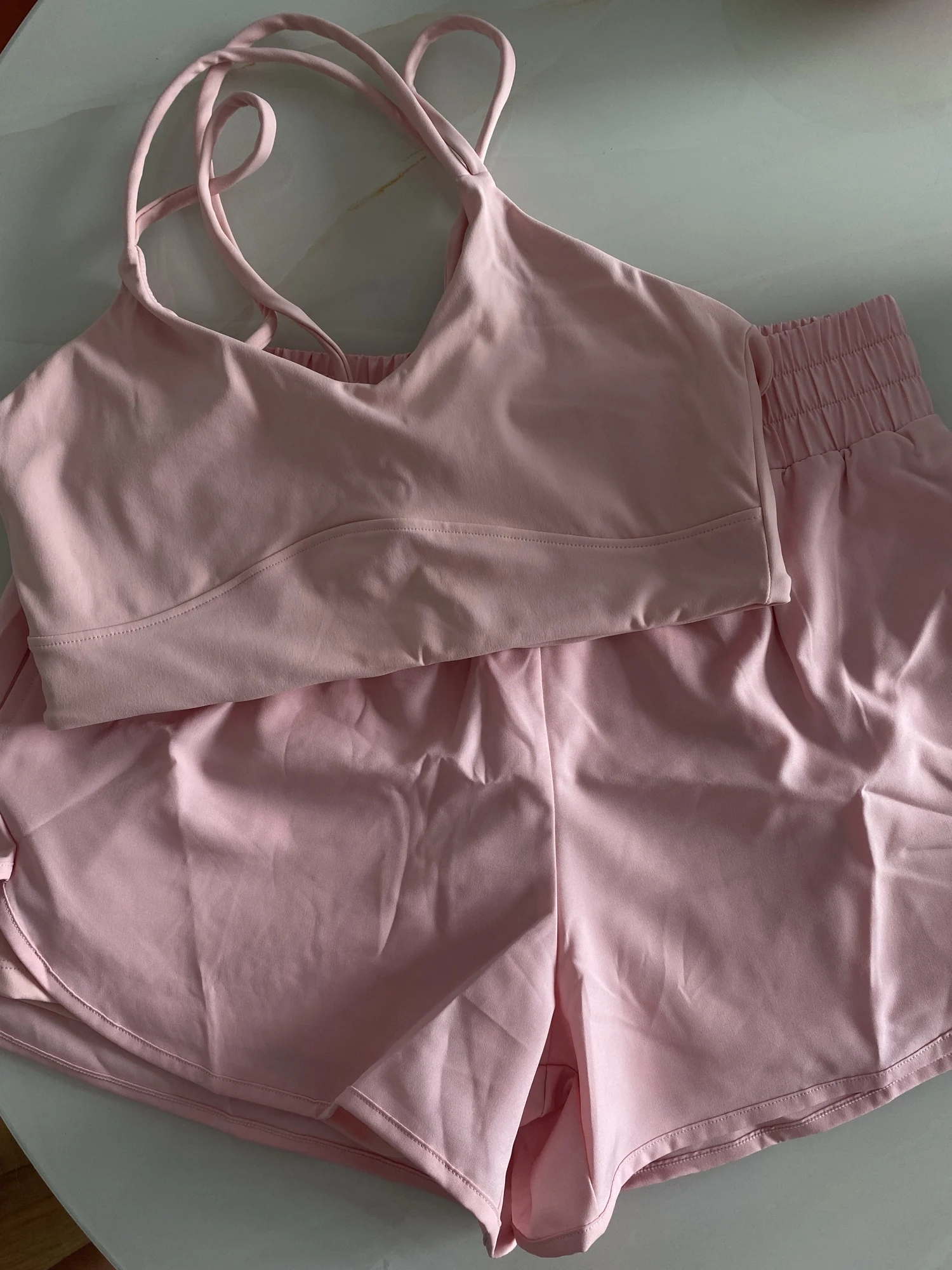 A pleasant shock! I didn't expect such great quality at all! Very dense and pleasant knitwear. Everything is sewn very neatly. For my XS-S, I ordered S. At first, I thought M would be fine, but no - size S fits perfectly. Everything fits snugly, but everything is very comfortable. Doesn't pinch or pull anywhere. For a height of 164 cm, there's even some extra room in the sleeves; when raising your arms, the jacket doesn't ride up. Shorts with gathering at the intergluteal seam, which creates the effect of beautiful toned buttocks. In short, I am very satisfied. I will order more leggings and a set in a different color. Thank you to the seller. Fast dispatch, fast delivery.